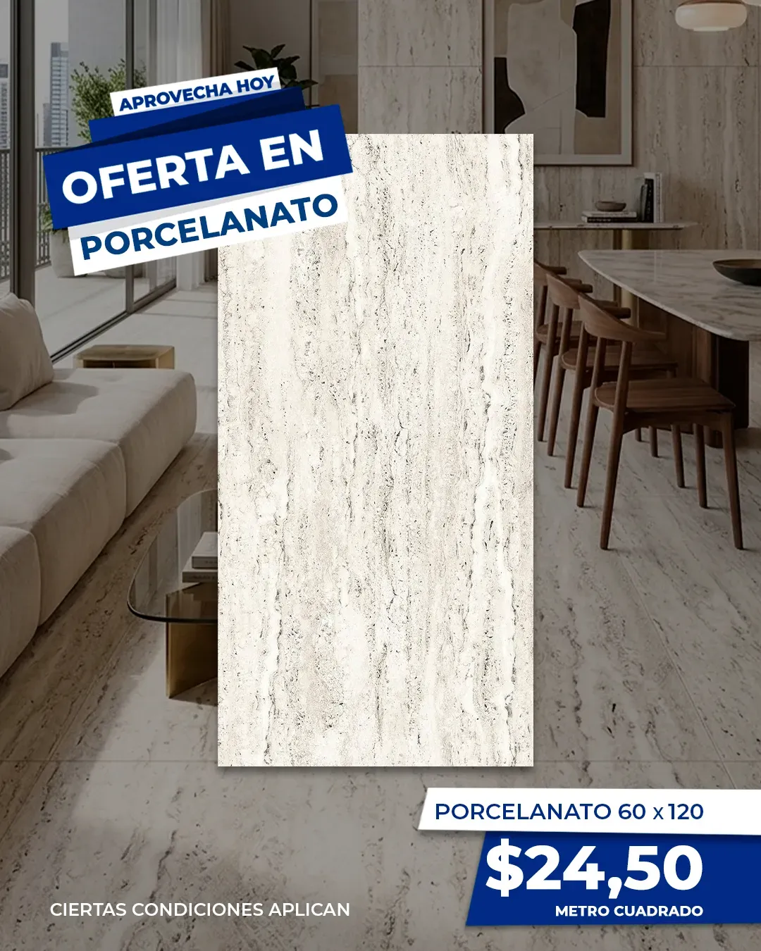 Renueva tu hogar con estilo y elegancia con nuestro porcelanato de 60 x 120 a un precio especial de $24,50 el metro cuadrado. Perfecto para darle un toque moderno a tu espacio. Aprovecha esta oferta exclusiva hoy mismo. ¡Condiciones aplican!